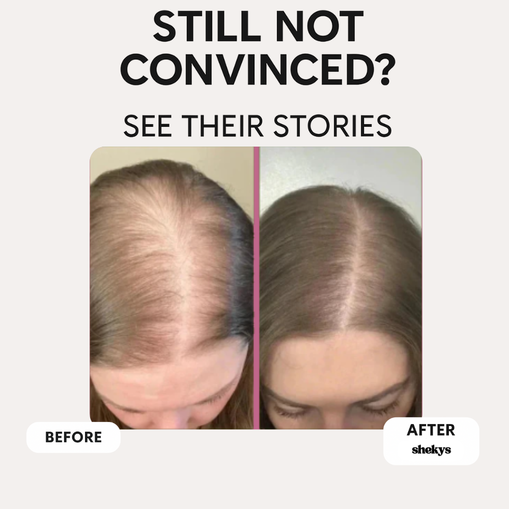 Shekys contains Green Tea Leaf Extract & Caffeine. These are powerful factors that help reduce DHT, making way for new, healthy hair growth. This combination helps restore hair density, for a complete scalp rejuvenation