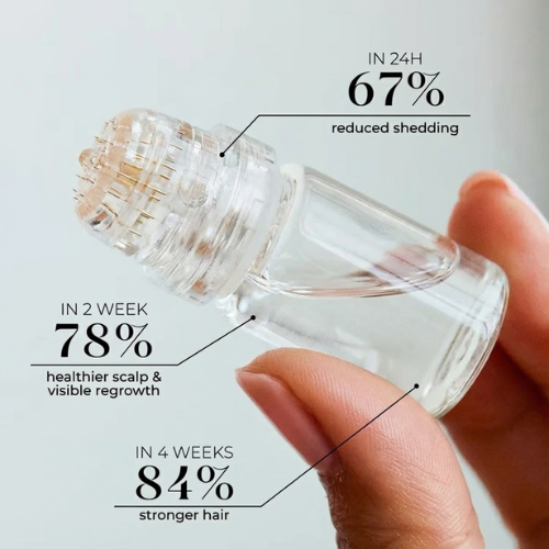 These micro-channels stimulate blood flow, collagen production, and follicle signaling, while instantly increasing absorption of our growth-supporting serum by up to 300%